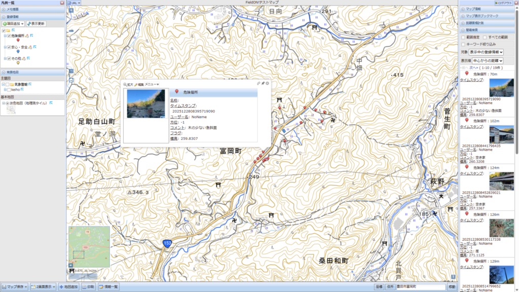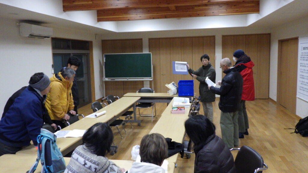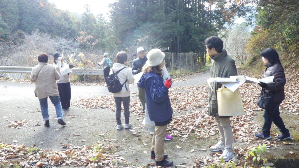 落葉が進んで見通しは悪くありませんが、両日ともツララを目にするほどの冷え込み。年明け以降、ワークショップはまち歩き結果の取りまとめ、及び逃げ遅れゼロに向けた仕組み作りの検討へ移っています。
