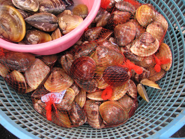 木曽三川の河口で獲れた赤須賀産のハマグリやシジミがお値打ち価格で販売され大人気でした。