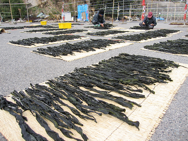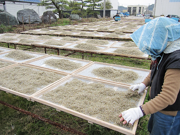 干し場では、今朝獲れたばかりの、うま味をぎゅっと凝縮したような
