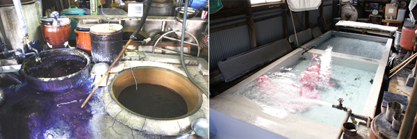 染めるときは、ボイラーをたき、釜からは湯気が…。夏は暑く、大変な作業。