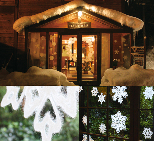 「SNOWFLAKE」は、水でガラス等に簡単に貼ることができ、