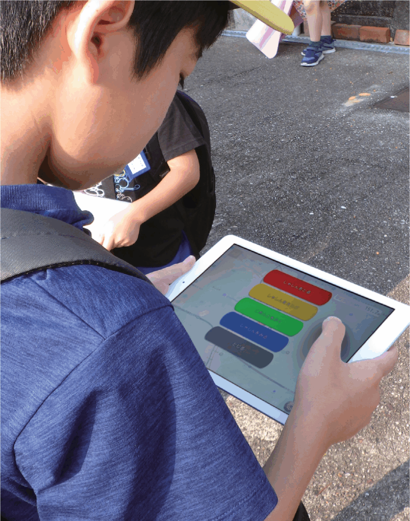 フィールドオンはタブレット一つで、情報の入力、写真撮影、集めた情報の集約、可視化が行えるアプリで、地図が読めない小学校低学年の児童にも地域を知る防災学習が可能です。