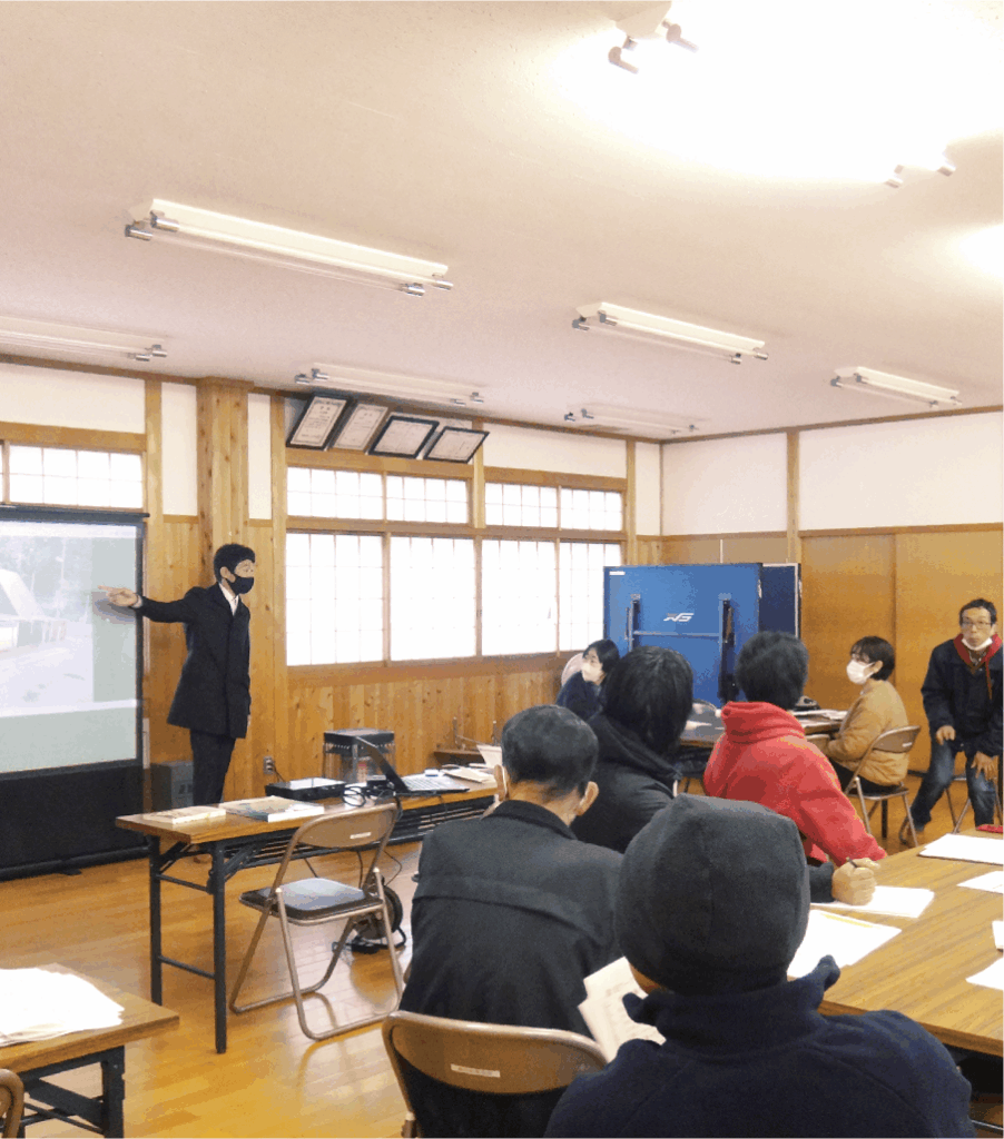防災マップ作成のためのワークショップの実施、防災力向上などに関する助言や監修を行います。