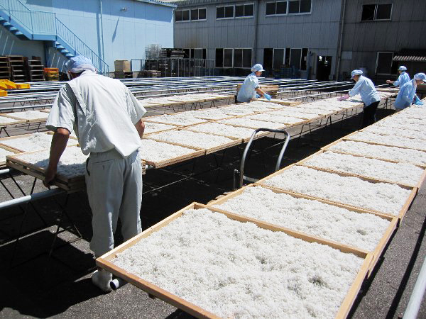 1947年の創業当時からのこだわりは、塩ゆでしたシラスを天日に干していることです。