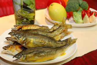 ➂皿にアユを並べ➀の野菜を盛り、➁のソースをかける。ゆるくラップをかけレンジで約5分。野菜がしなってきたら取り出す。レンジを使わずフライパンで調理してもよい。