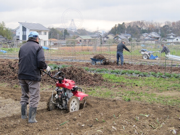 メンバーのみなさんは、収穫したネギを袋につめたり、耕運機で土を耕したり、