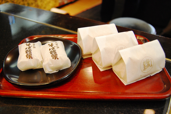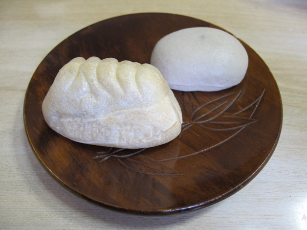 お店を代表するお菓子のそば饅頭と御嶽もなか、ネットからも注文承ります