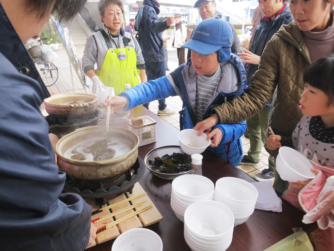 こうしたエコツーリズムの活動は、少しずつ市民にも浸透してきています。2016年の冬には観光客を相手に鳥羽駅前で答志島のワカメを無料配布。これは島を訪れる観光客に目を向け始めた漁師からの提案によるものでした。
