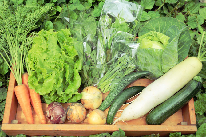 年間50種類近くの野菜を栽培し、「オアシス21オーガニックファーマーズ朝市村」(名古屋市中区栄で開催)で販売するほか、インターネットや口コミで購入希望者を募り、宅配で送っています。