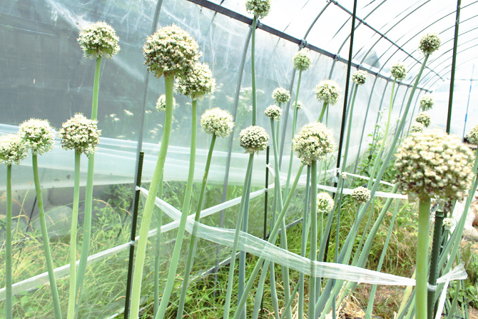 現在、市販されている野菜の種のほとんどは一代限りのものですが、伊藤さんは昔から受け継がれている種(固定種)で育てたいと、自ら育てた野菜から種を取るようにしています。トマト、ナス、ピーマン、キュウリ、ズッキーニ、タマネギなどの種取りがうまくいっていると言います。「この土地で育った野菜の種は、次第に粘土質のこの土地になじんだ種になっていきます。無肥料自然栽培という方法で、肥料は使わず、土の力を借りて野菜を作っているので、この種の生命力に助けてもらっています。自然の力や植物の生命力を生かした方法ですね。無肥料で栽培すると、野菜の味が違います!」と伊藤さん。