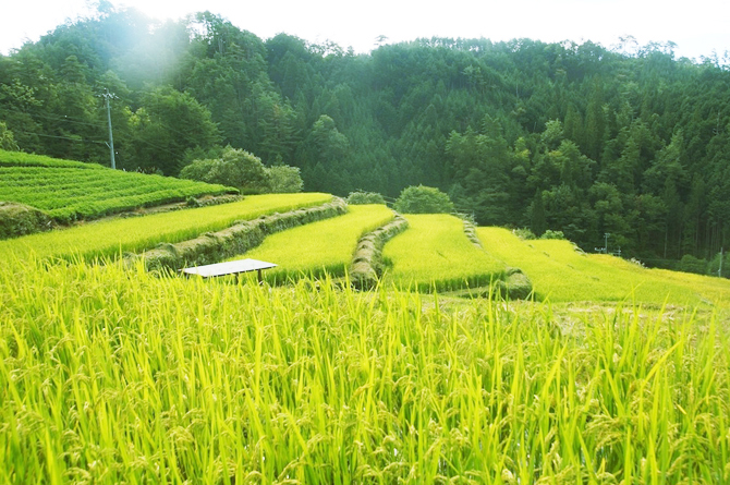 白川町の佐見地区にある「くわ山結びの家」から車で15分ほど山を登ったところに開けた室山集落。標高差50メートルの間に茶畑と棚田が広がる、のどかな風景に心が和みます。室山の棚田で有機による米作りをしている、椎名啓さんと紘子さんご夫妻にお話を聞きました。