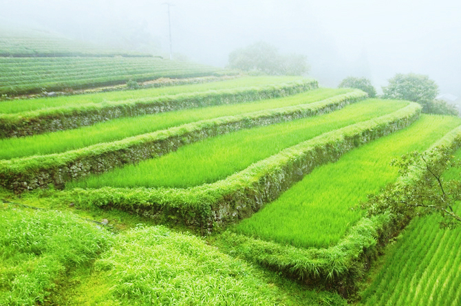 隴ス螟ゆシ宣€包スサ陷偵・DSC03827田植えが終わり、緑色に染まった棚田の美しい風景