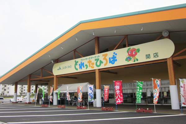 JAめぐみの直営の直売所「とれったひろば関店」。新鮮な旬の味覚が揃います