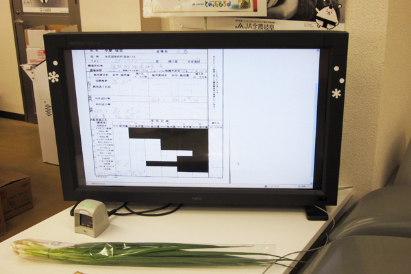 生産者の方々は毎朝、収穫した野菜を袋に入れ、バーコードを貼り、店頭に陳列します。