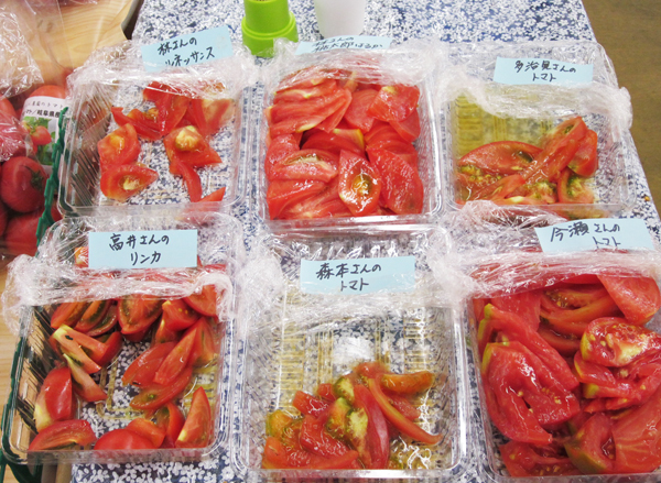 トマトの試食も多彩。お気に入りの生産者を見つけられそうです