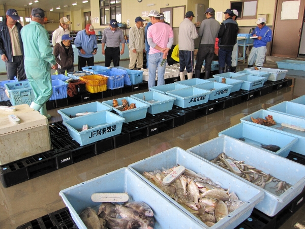 船着場から歩いてすぐのところにある鳥羽磯部漁協答志支所の魚市場をさっそく訪ねてみました。
