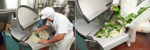 (右)最終段階で再度青じその生葉を入れ、青じその風味や香りを調整。