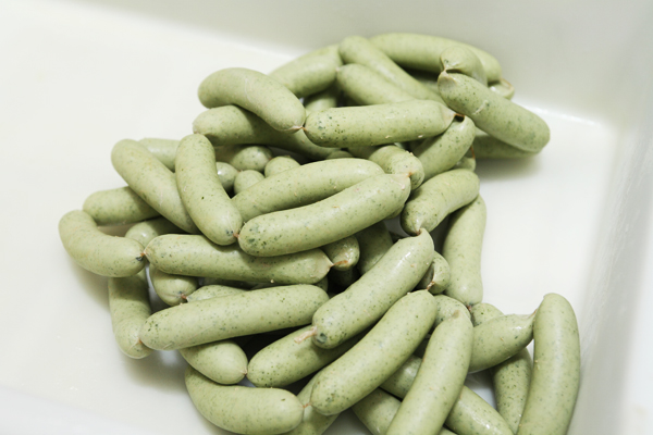 味はもちろんのこと、緑色のウインナーは他にはありません。