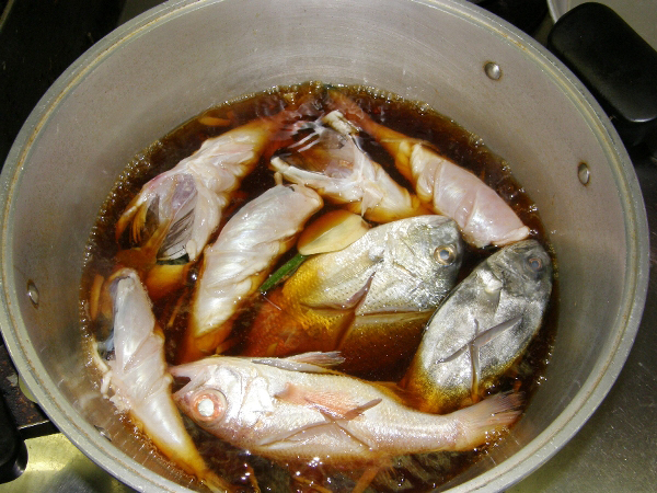 魚を重ねないよう底の広い鍋でしっかりと煮込んでいきます。