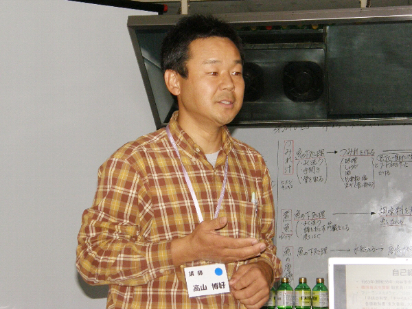 食事の後は、講師の高山さんが、現在行っている不耕起農法の特徴や